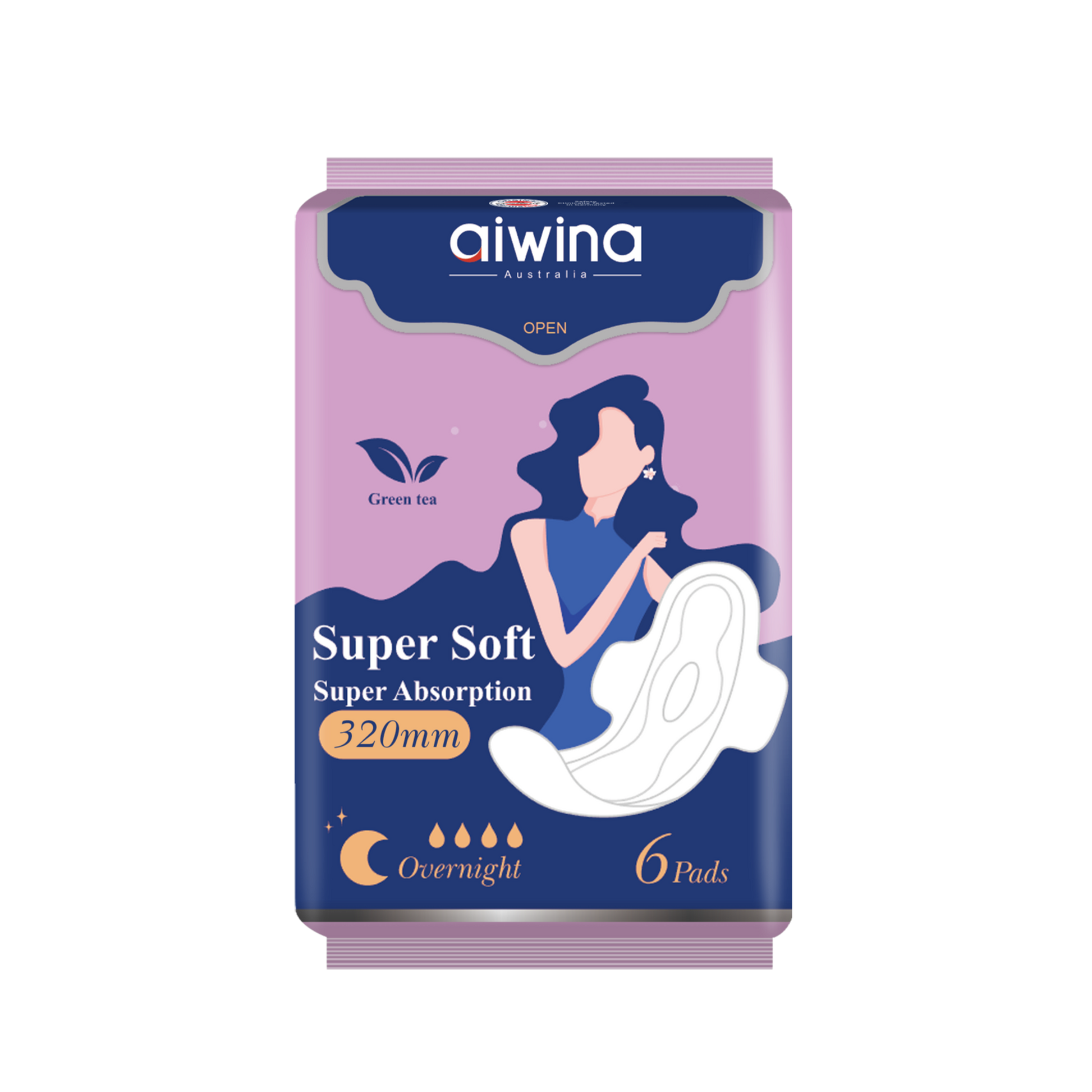 Aiwina Comfy Super Soft Sanitary Napkin 320mm is perfect for heavy flow and overnight use.Designed with a soft cover with a unique 2-layer design for the ultimate comfortable nighttime experience.The Super Absorbent Core draws moisture away for faster absorption. Each pad has grooves that channel moisture into the center of the pad for effective leakproof. With extra width and length compared to daytime pads,it give the added protection for worry-free night sleep.The aluminized packaging with a reusable seal makes the package able to stick back after first opening, which is convenient for storing the remaining sanitary napkins.