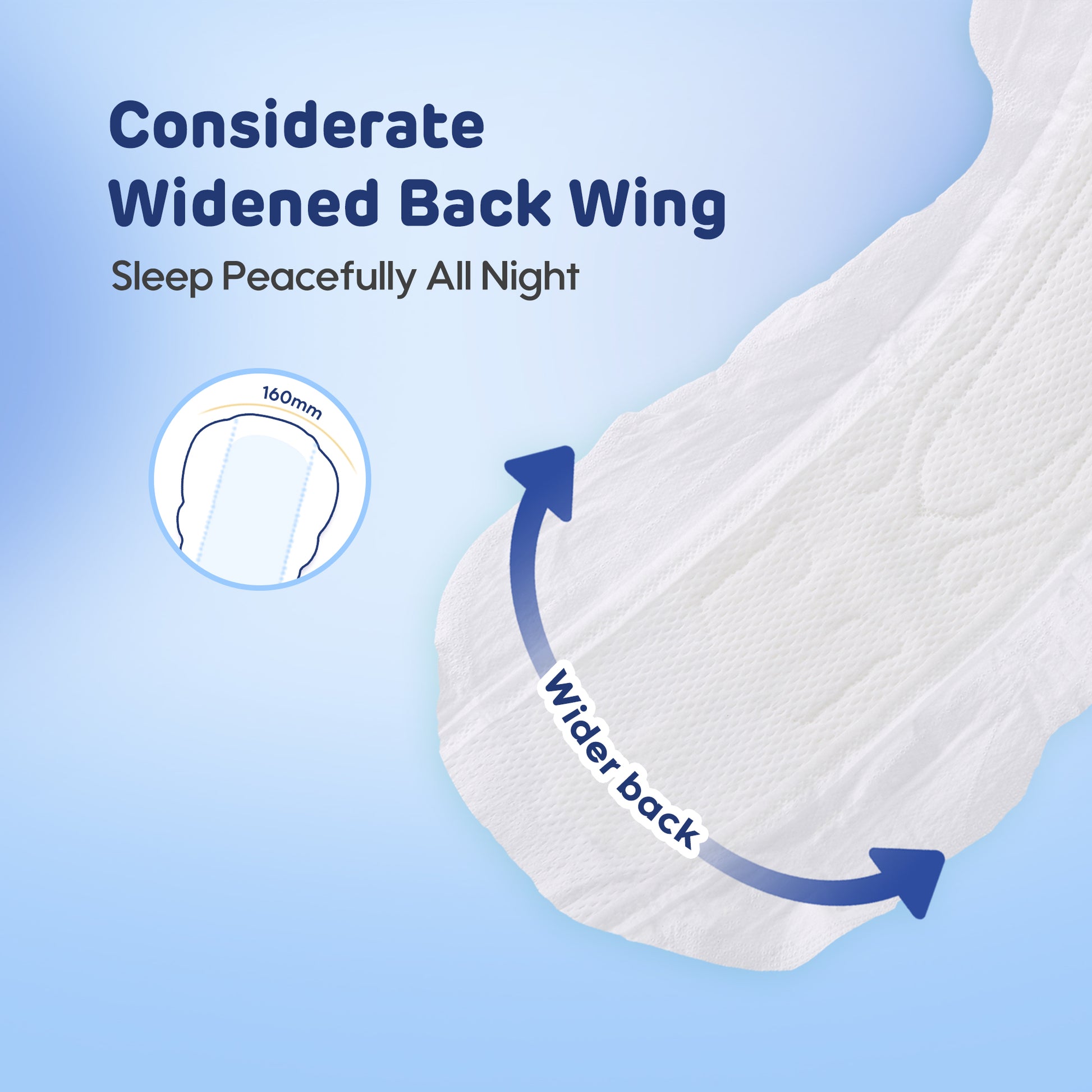 Aiwina Comfy Super Soft Sanitary Napkin 420mm is perfect for heavy flow and overnight use.Designed with a soft cover with a unique 2-layer design for the ultimate comfortable nighttime experience.The Super Absorbent Core draws moisture away for faster absorption. Each pad has grooves that channel moisture into the center of the pad for effective leakproof. With extra width and length compared to daytime pads,it give the added protection for worry-free night sleep.The aluminized packaging with a reusable seal makes the package able to stick back after first opening, which is convenient for storing the remaining sanitary napkins.
