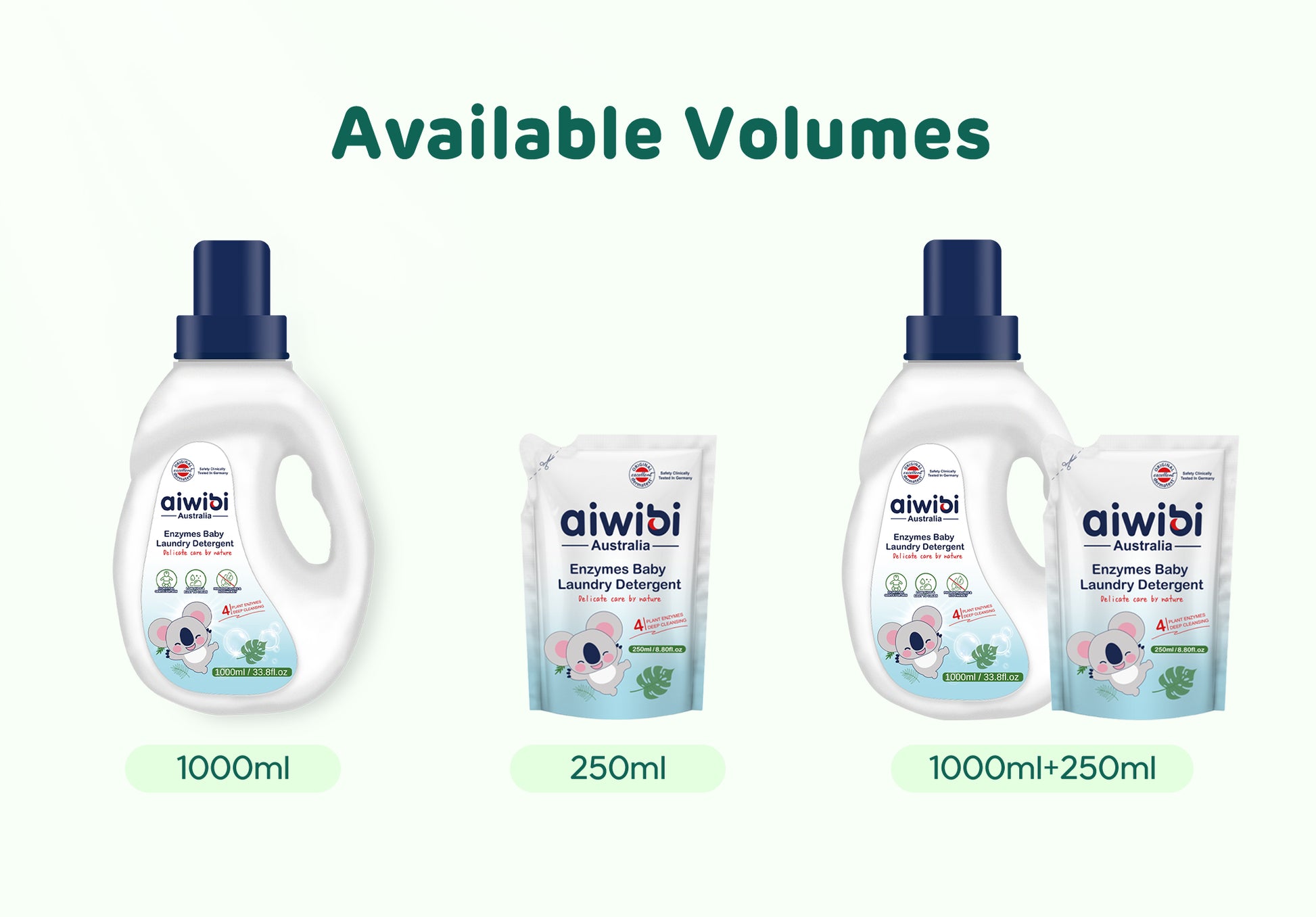 Aiwibi Enzymes Baby Laundry Detergent features a plant-based formula with four types of natural enzymes: amylase, protease, lipase, and cellulase, ensuring effective stain removal without harsh chemicals.