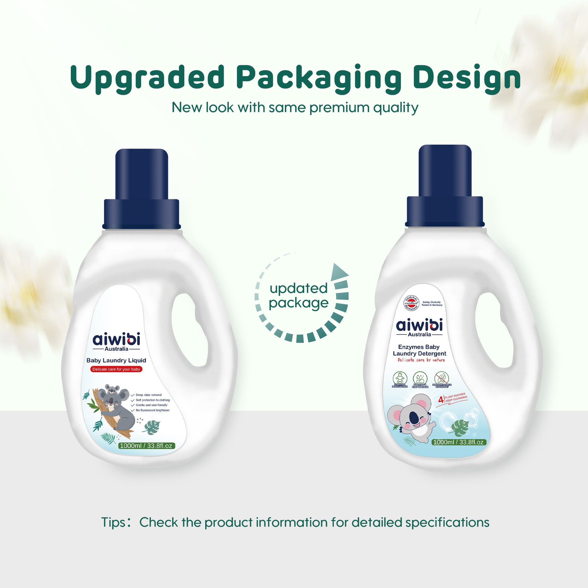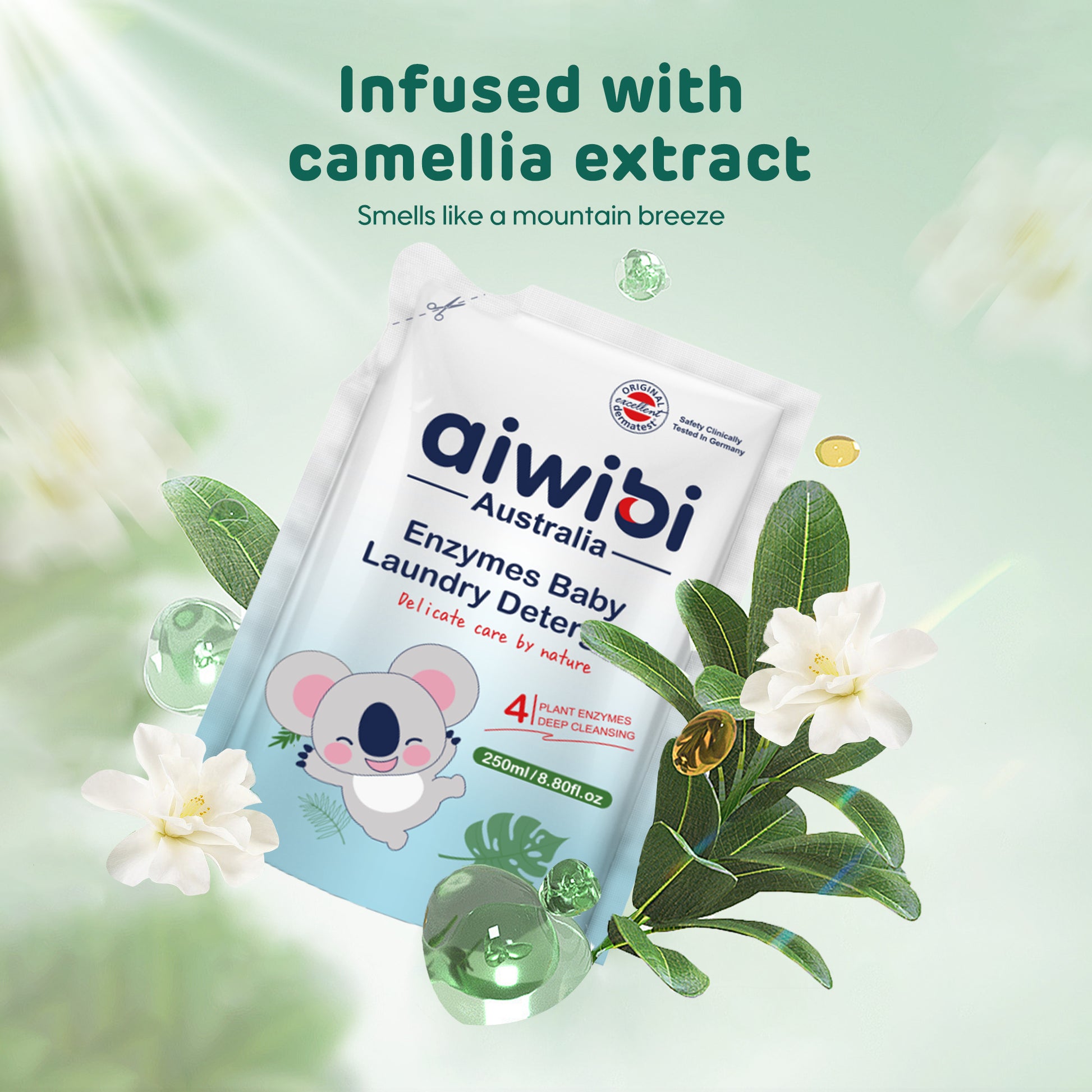 This laundry detergent features four natural plant enzymes for powerful and highly effective stain removal. Our formula emphasizes multiple 0-additives and is mildly acidic, ensuring gentle care for both clothes and skin. It delivers 9 benefits in one, offering you a clean and reassuring laundry experience.