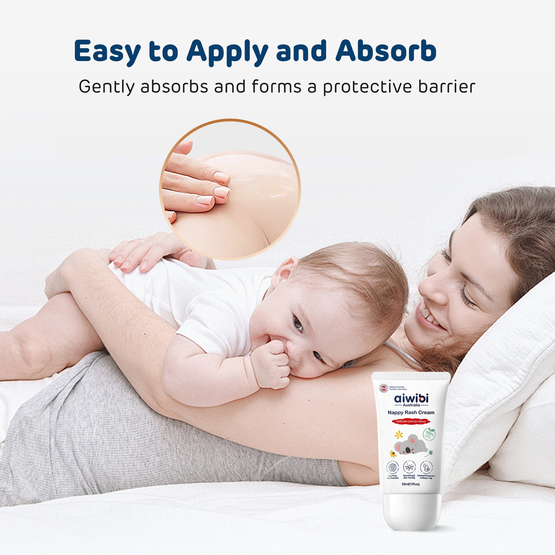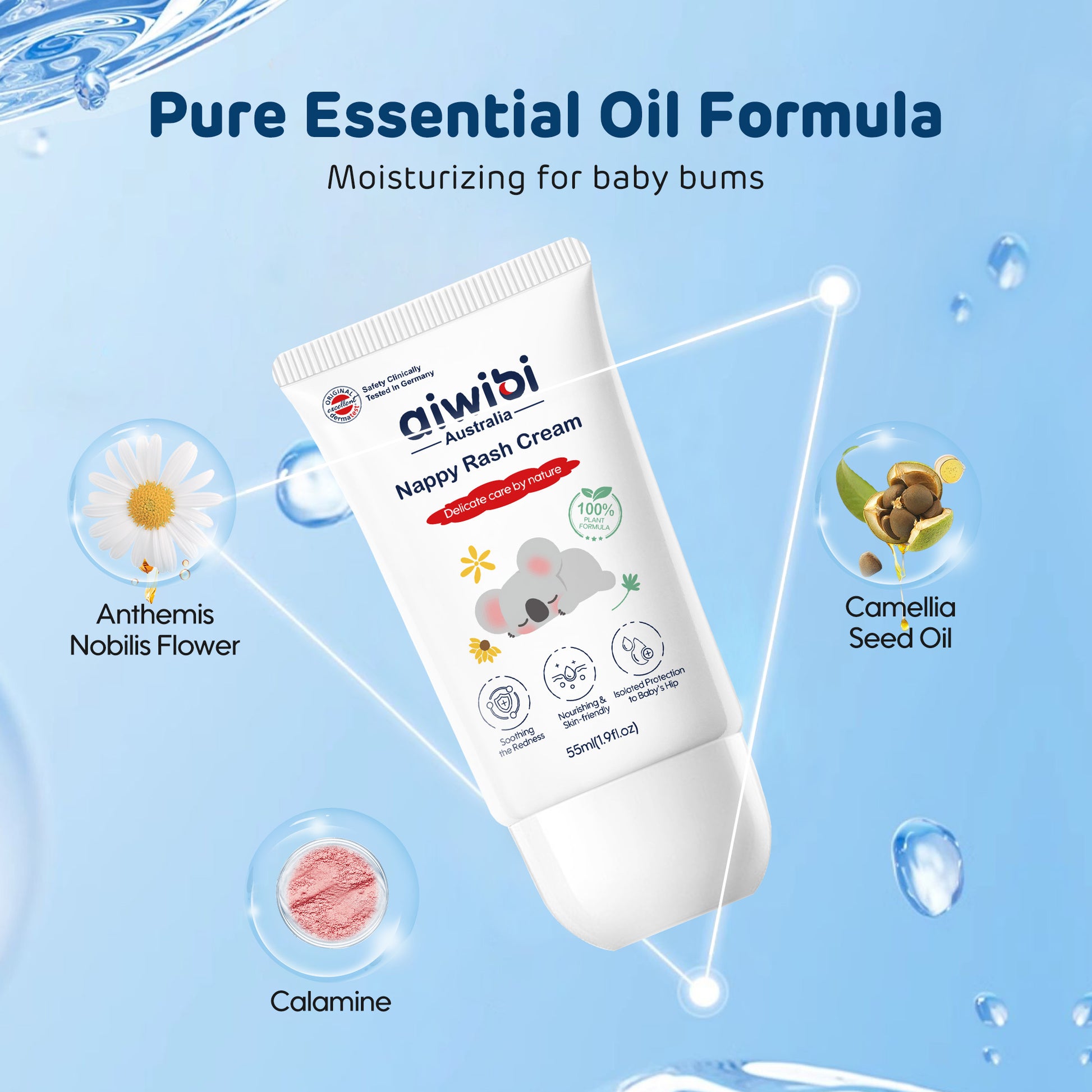 Formulated with natural ingredients like Beeswax and plant extracts, Aiwibi Nappy Rash Cream creates a protective barrier that prevents irritation and moisturizes effectively. Made with 100% pure, waterless botanical essential oils provides rapid hydration and a protective barrier to gently soothe, protect baby's delicate skin and repair from diaper rash. Its lightweight, non-sticky formula absorbs easily, ensuring comfort while being free from alcohol and fragrances.