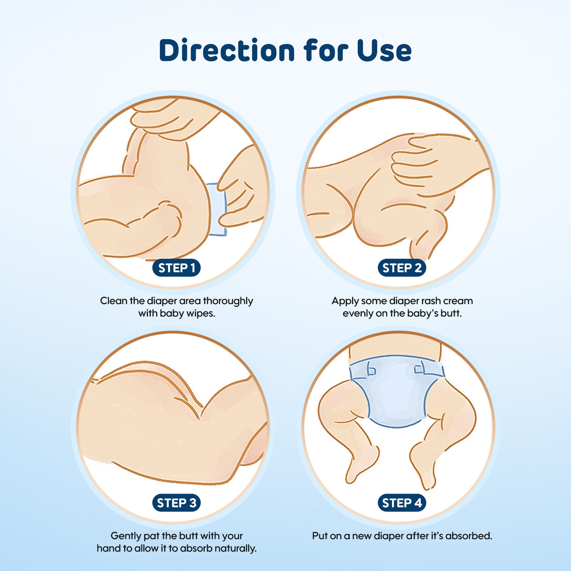 Introducing our new diaper rash cream, crafted with a pure essential oil formula for the gentlest care. It's free from harmful, irritating chemicals, ensuring pure safety for your baby's skin. The cream is easy to apply and absorb, quickly forming a breathable, waterproof barrier that effectively moisturizes and repairs diaper rash. Dermatest certified for your complete peace of mind.
