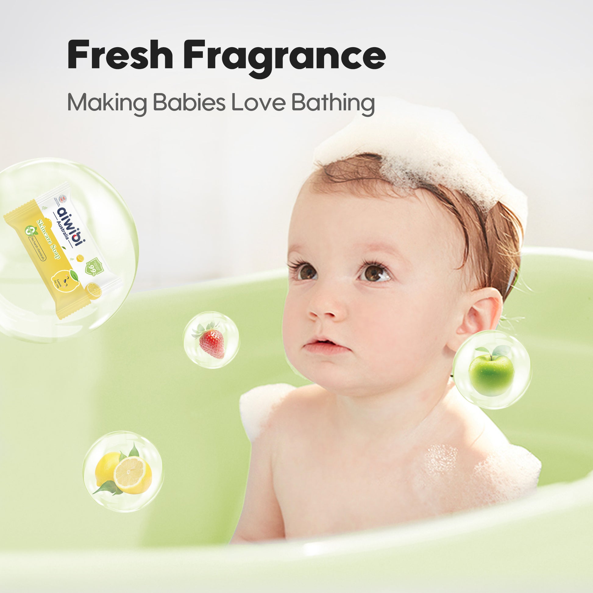 Choose from Strawberry, Lemon, or Green Apple fragrances—mild, refreshing, making babies love bathing!