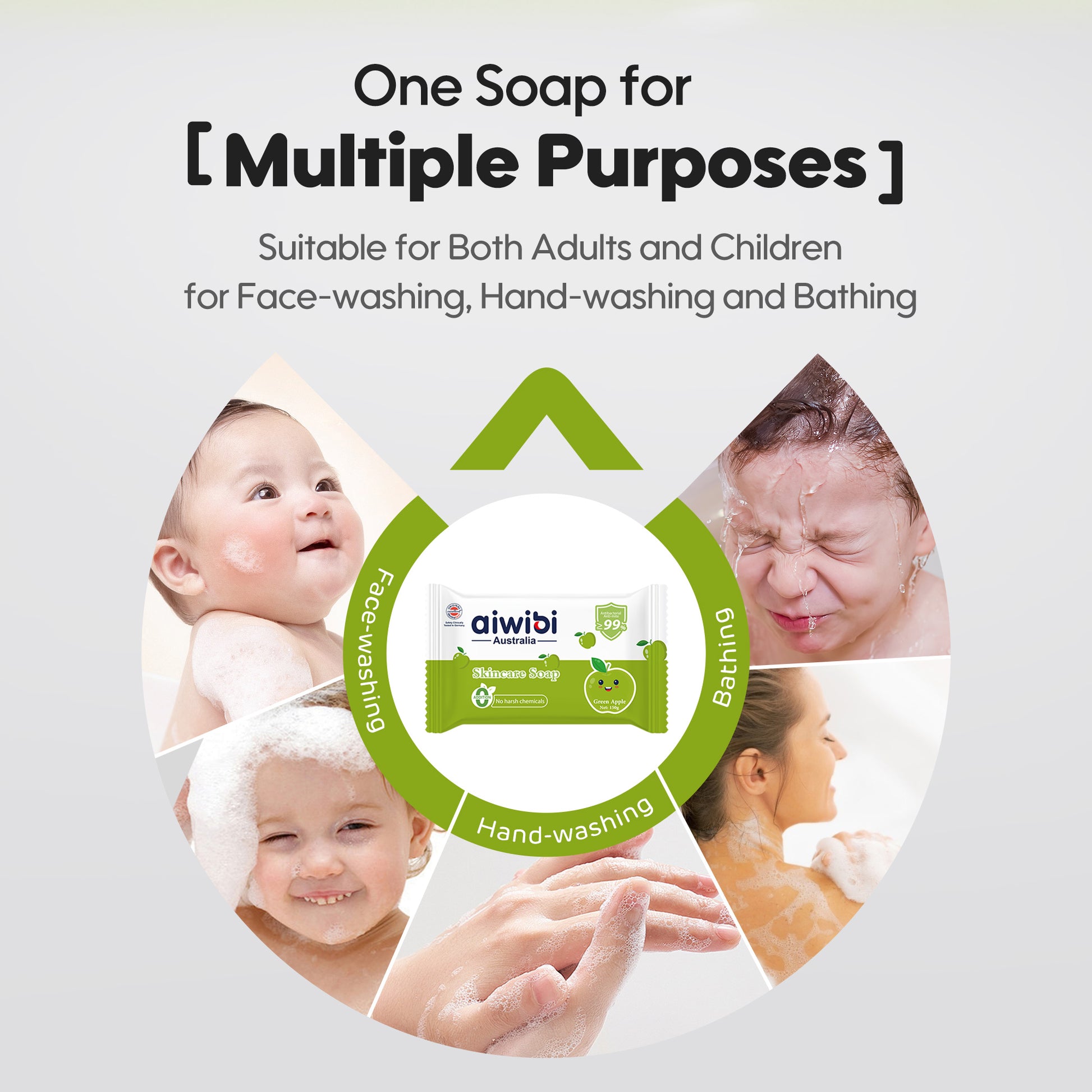 Use Aiwibi Skincare Soap for hand-washing, bathing, or facial cleaning—gentle enough for babies yet effective for adults. Simplify your routine with just one Aiwibi Skincare Soap!